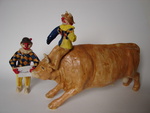 2010Tijdens het Costaricaanse stierengevecht zijn de clowns de toreadors die alleen maar plezier maken, terwijl de stier na een tijdje zelfstandig de ring weer verlaat. Handgebouwd, hol, uit een mengsel van steengoedklei en porseleinklei.